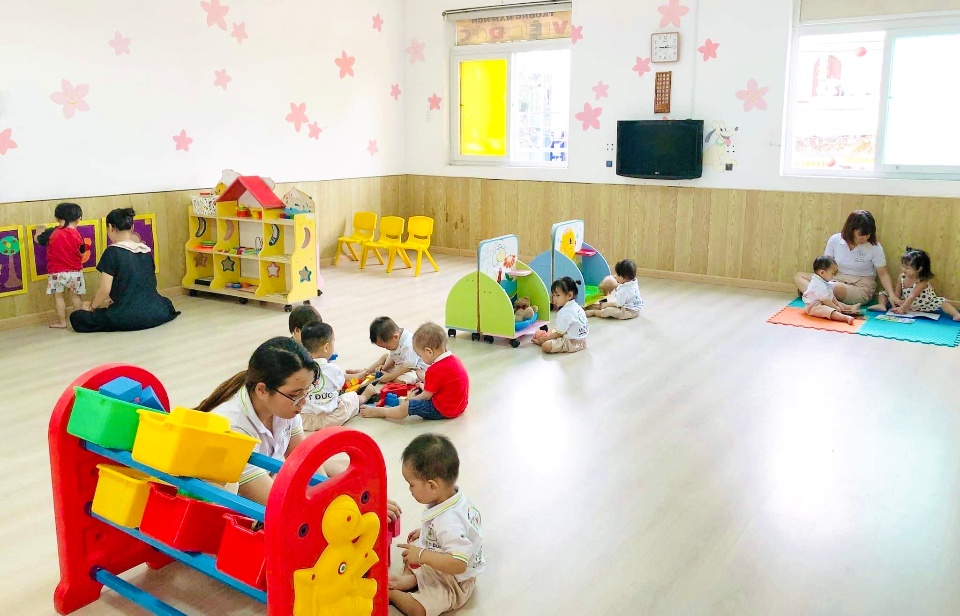 Lớp học không gian rộng rãi, thích nhất camera trực tuyến. Các cô đều vui vẻ, nhiệt tình.